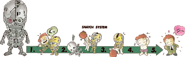 - The trope picture comes from the Sega CD game Snatcher, despite its oversimplification of the eponymous robots' preferred method of impersonating humans: grafting the replica skin and muscle tissue of their quarry over an exoskeleton in a People Jar.