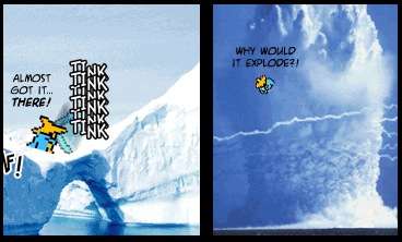 - One of the examples of Bulbapedia's "Anime Physics": "Nearly everything explodes in the anime. Most attacks explode when they connect with an opposing attack, even if the attacks would not normally do so." The entry lampshades the water/leaves explosions and the "moves amplified in power and even made to explode just to enable them to blast off Team Rocket", and notices "Some moves explode when they clearly cannot, such as a Bite attack."