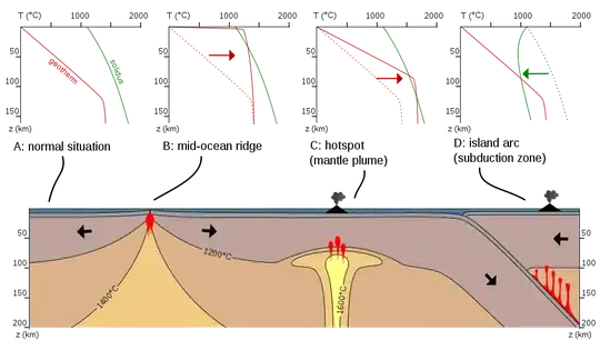 3There are no large bodies of magma in the mantle. We know this because we can measure the propagation of seismic shear waves through the mantle and they propagate through the whole mantle, meaning that it must be solid, because shear waves cannot travel through a liquid. S waves do not propagate through the outer core and this is how we know that it is liquid. – bon Apr 25 '16 at 09:17