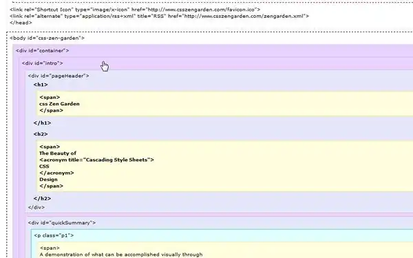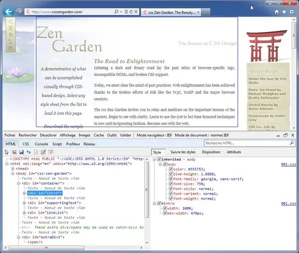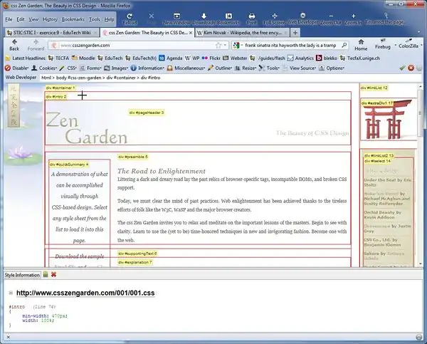 The CSS Zen garden The CSS Zen garden project (dated 2004 ?) issued a challenge to professional web designers: Build a very good looking web page from a fixed HTML text using CSS2. The website and book are now outdated with respect to the emerging HTML 5 and CSS3. However, one still can learn a lot from it.