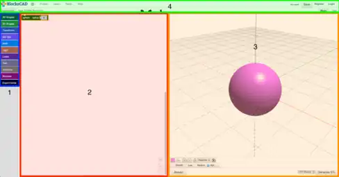 The BlockCAD interface is divided into four parts: