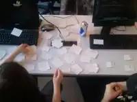 - Excerpts from a two-day card sorting workshop, (2min20s on Vimeo), conducted by Jayson Elliot in 2010. “Several groups of three users at a time were asked to sort cards representing content from a client's web site into piles that they felt were associated with each other. At the end of each session, the groups would switch places with another group of three people, and asked to edit the last group's work. By observing the interactions, listening to users' conversations, and compiling data on how cards were sorted, we were able to gain valuable insights into the ideal structure and taxonomy of the website.” (retrieved Mars 2011).