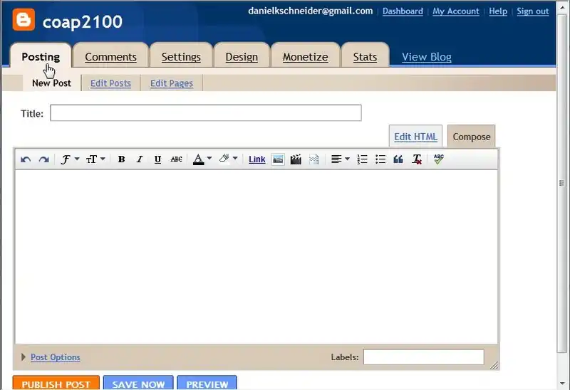 - If you can see your blog, click on either design or New Post (top right) to enter a configuration page.