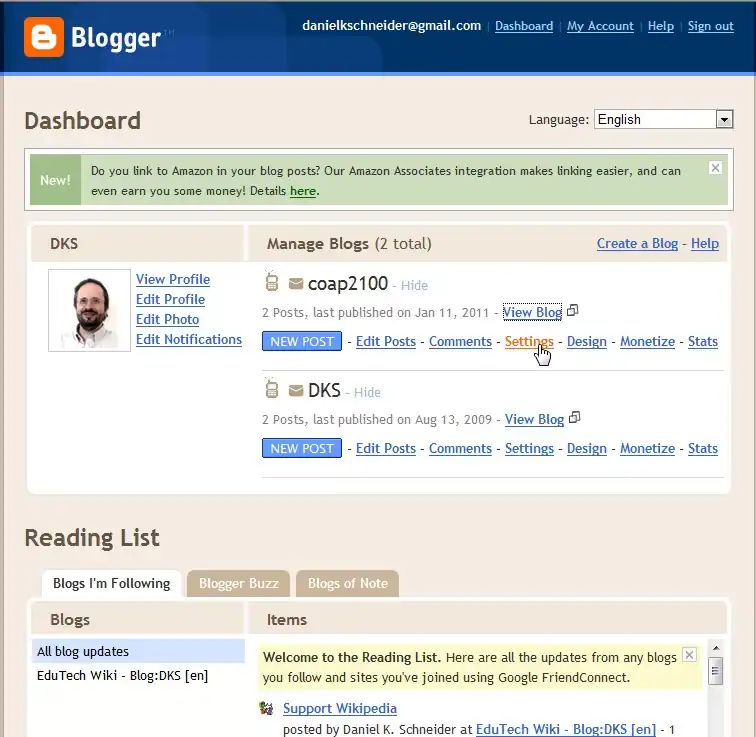 As soon as you created a blog, you will have access to a Dashboard that allows to manage all blogs created. By default, when you log into http://blogger.com you will land in the Dashboard.