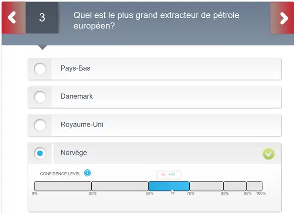 In order to prevent random answers, users must enter confidence degrees. According to the selected degree, positive and negative points change.