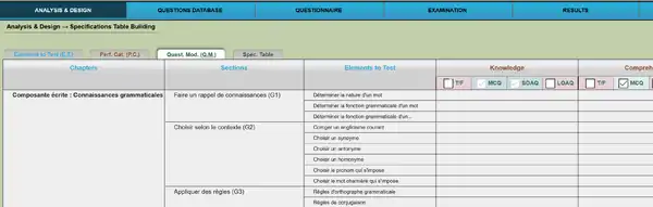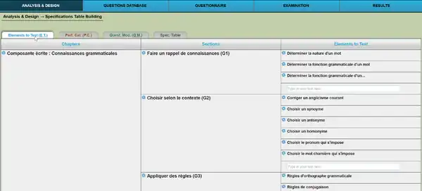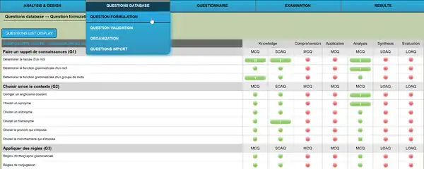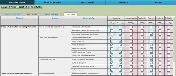 - Create a table of specifications (TDS), i.e. a matrix PE x CP with a cognitive level for each CP (e.g. recall, understand, apply, analyse, evaluate, create)