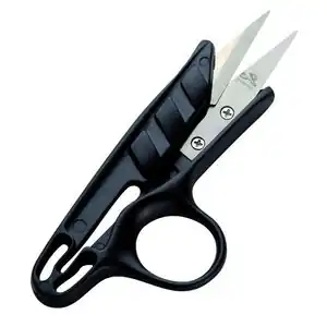 | Thread Clippers | Small cutting utensil with a spring action that's operated by the thumb in a hole on the top blade and the fingers cupped around the bottom blade. Useful for quick thread cutting, but unsuitable for detailed trimming or removal of backing. |