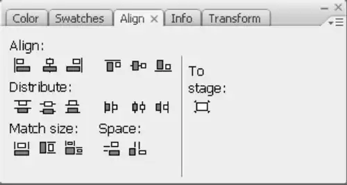 To see what each icon does, move your mouse cursor over it. The align panel icons convey the following kind of message: