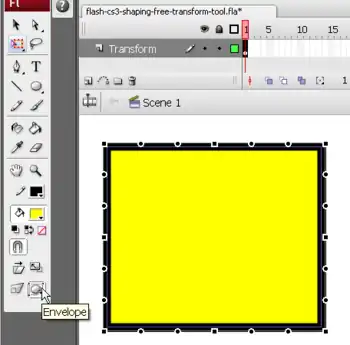 - Transform a drawing object or shape with the select tool, envelope transforms (Free transform and Envelope transform tools), and the sub-selection tool.
