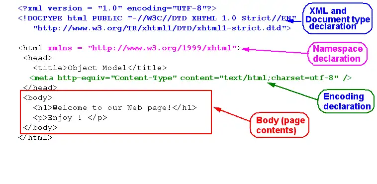 Markup of an HTML page is divided into two big parts: the head contains information that the user will not see inside the browser window and the body contains the contents to be displayed. We can express this with a simple formula: