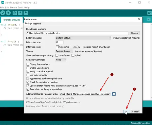 - Select SparkFun AVR Boards by SparkFun Electronics