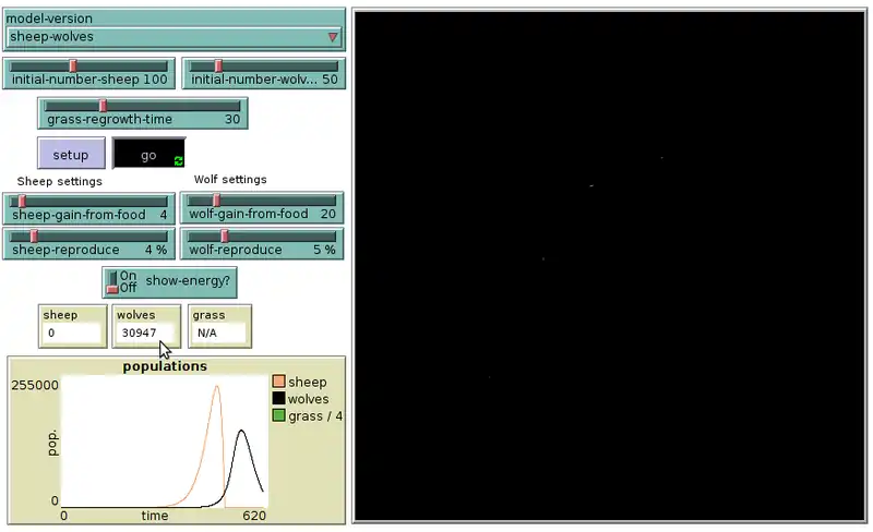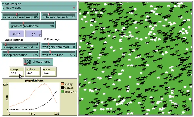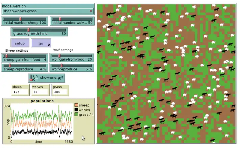 - ↑ 4.0 4.1 4.2 Wilensky, U. (1997). NetLogo Wolf Sheep Predation model. http://ccl.northwestern.edu/netlogo/models/WolfSheepPredation. Center for Connected Learning and Computer-Based Modeling, Northwestern University, Evanston, IL.