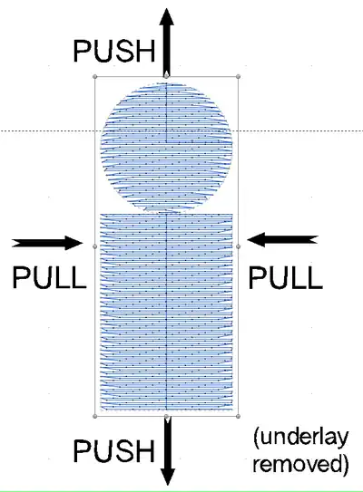 The following figure shows push/pull directions for a horizontal stitching pattern: