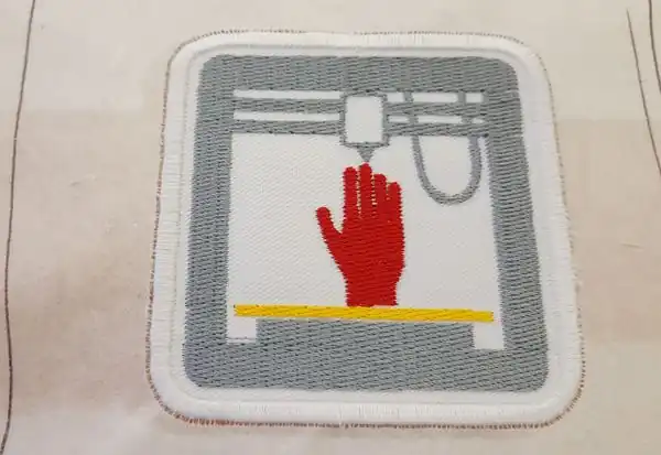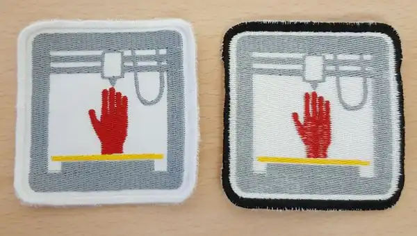 The patch was cut out with a laser cutter. You also can use simple scissors and instead of cutting directly the fabric you could print a paper model. The advantage of using a laser cutter is that it will a high precision job and "melt" the borders.