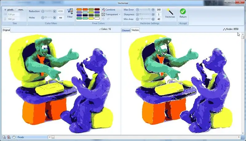The "mangled" bitmap doesn't need any color reduction in the vectorizer panel as you shall see.