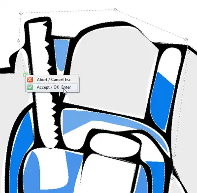 - Then press F9. If the error is still there, simplify the vector again, i.e. kill what I call "fractal" areas. Hold down the SHIFT key and select a range of nodes to kill, then kill these with context menu (right-click).