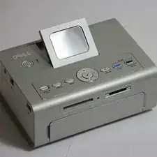 Rotate the photo printer so that the bottom panel faces up once again. Now lift off the bottom panel of the case to access all internal components.
