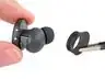 Use your fingers or tweezers to pull the silicone ring off its groove in the earbud.