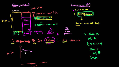 Companies often buy or merge with other companies using shares (which is sometimes less intuitive than when they use cash). This tutorial walks through the mechanics of how this happens and details what is likely to happen in the public markets because of the transaction (including opportunities for arbitrage).