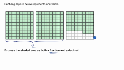 Write decimals and fractions greater than 1 shown on grids