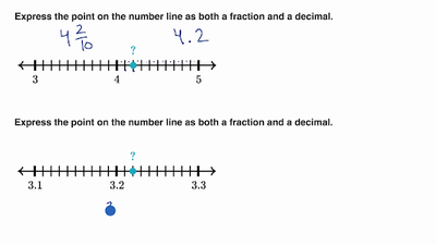 Writing decimals and fractions shown on number lines