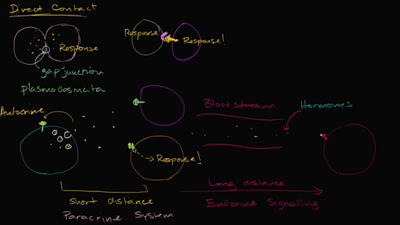 If you were a cell, how would you say hello to your neighbor? Well, okay, you probably wouldn't be saying hello. (Maybe something more like "Divide now!" or "Become a skin cell!") Whatever you might be saying, however, chances are you'd be saying it in the form of chemical signals. Learn more about the types of signaling molecules cells use, the receptors that perceive them, and the types of chang