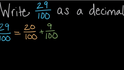 Write fractions as decimals (denominators of 10 & 100)