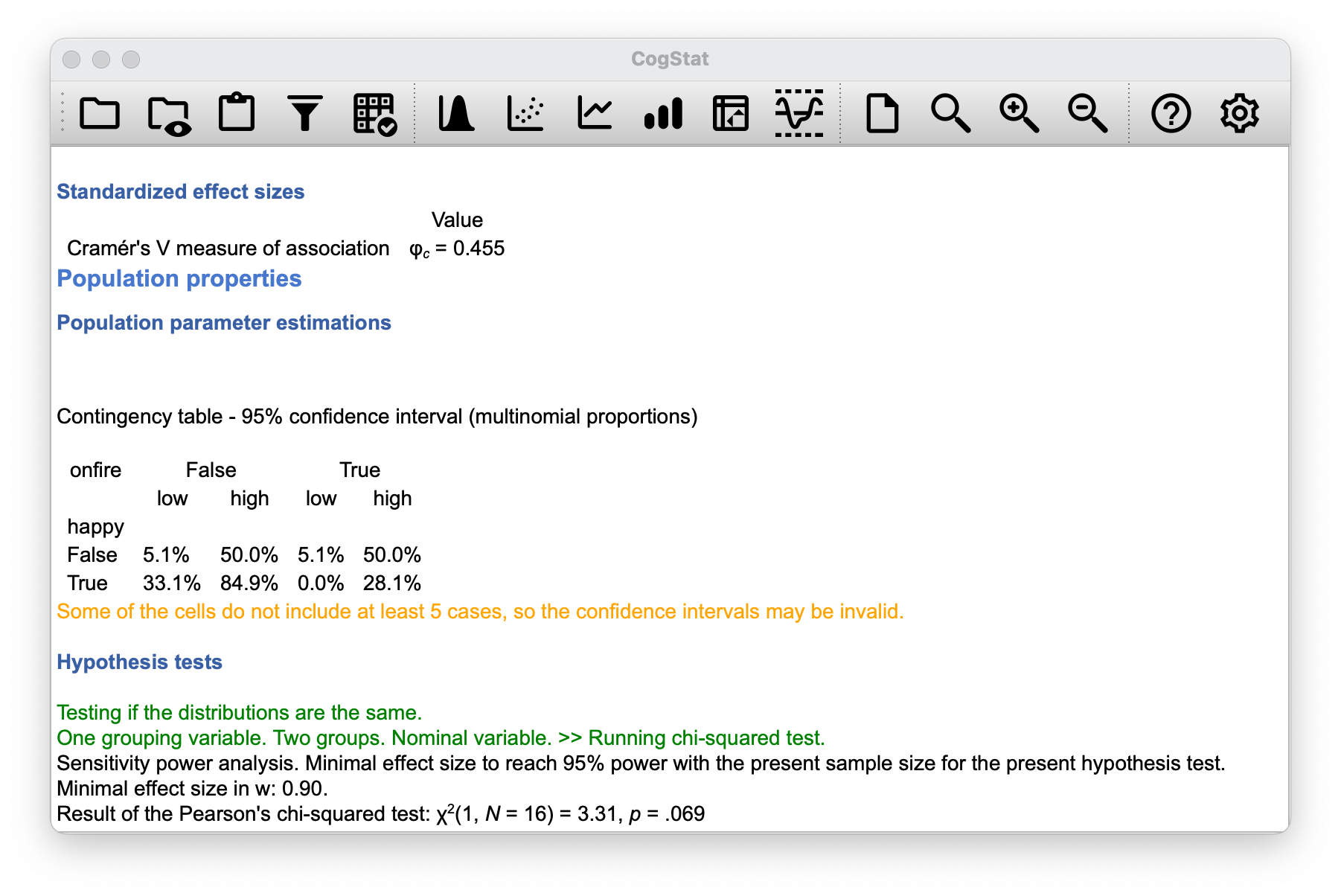 7. Technically, CogStat uses chi2_contingency function from scipy without specifying the correction parameter which defaults to true.↩︎