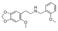 2C2-NBOMe (NBOMe-MMDPEA-2) is a phenethylamine derivative from the 25-NB class. It acts as a potent agonist at the 5-HT2A receptor with weaker activity at 5-HT2B and 5-HT2C, and produces a head-twitch response in animal studies which often correlates with potential for psychedelic effects in humans. It is related in structure to psychedelic amphetamine derivatives such as MMDA-2 and is the first phenethylamine derivative with a methylenedioxy substitution on the phenyl ring but no alkyl substitution on the alpha carbon, that has been shown to produce psychedelic-appropriate responding in animals.[1][2]