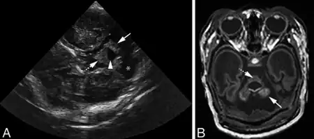 - ↑ Steggerda, S. J.; de Bruïne, F. T.; Smits-Wintjens, V. E. H. J.; Verbon, P.; Walther, F. J.; van Wezel-Meijler, G. (September 2015). "Posterior fossa abnormalities in high-risk term infants: comparison of ultrasound and MRI". European Radiology. 25 (9): 2575–2583. doi:10.1007/s00330-015-3665-8. ISSN 1432-1084. Retrieved 18 July 2023.