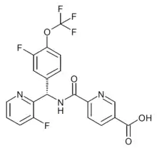 - ↑ Horne DB, Biswas K, Brown J, Bartberger MD, Clarine J, Davis CD, et al. (September 2018). "Discovery of TRPM8 Antagonist ( S)-6-(((3-Fluoro-4-(trifluoromethoxy)phenyl)(3-fluoropyridin-2-yl)methyl)carbamoyl)nicotinic Acid (AMG 333), a Clinical Candidate for the Treatment of Migraine". Journal of Medicinal Chemistry. 61 (18): 8186–8201. doi:10.1021/acs.jmedchem.8b00518. PMID 30148953. S2CID 52095823.