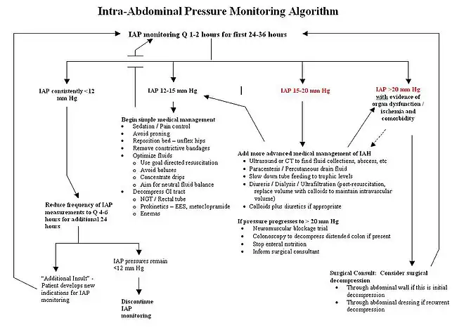 | Diagnostic method | High Foley catheter pressure and organ failure[1] |