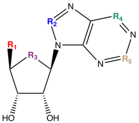 Cangrelor another ATP analogue like ticagrelor, is stable to enzymatic degradation. It has a fast onset of action as it is not broken down into an active metabolite like thienopyridines.[13] AstraZeneca got exclusive license for cangrelor in December 2003. In 2009 the sponsor for the phase 3 trial pulled out, where cangrelor was being tested against placebo. Cangrelor development was halted for a time when the sponsor pulled out after the interim analysis review committee (IARC) decided that the trial wouldn't show the "persuasive" clinical efficacy that is need for regulatory approval.[14] However Champion phoenix trial (sponsored by the biopharmaceutical company, The Medicines Company), a double-dummy, double-blind placebo-controlled trial where 11,145 patients who were undergoing rather urgent or elective PCI were randomly assigned to receive cangrelor or clopidogrel before PCI showed that cangrelor significantly reduced the rate of ischemic events during PCI. Cangrelor lowered stent thrombosis development more than clopidogrel. These findings were published in 2013.[15] Cangrelor got FDA approval in June 2015 as an antiplatelet drug for intravenous application.[16]