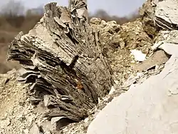 At least two forms of alginite are distinguishable, "alginite A" (telalginite) and "alginite B" (lamalginite).[1] The "A" form contains morphologically distinguishable microfossils while the "B" form is more amorphous and film-like.