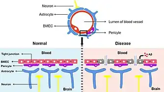 - 1 2 3 Sweeney, Melanie D.; Sagare, Abhay P.; Zlokovic, Berislav V. (March 2018). "Blood–brain barrier breakdown in Alzheimer disease and other neurodegenerative disorders". Nature Reviews Neurology. 14 (3): 133–150. doi:10.1038/nrneurol.2017.188. ISSN 1759-4758. PMC 5829048. PMID 29377008.