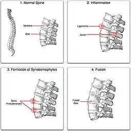 16. Haroon N (June 2015). "Ankylosis in ankylosing spondylitis: current concepts". Clinical Rheumatology. 34 (6): 1003–7. doi:10.1007/s10067-015-2956-4. PMID 25935456. S2CID 25930196.