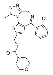 • 3-(4-(2-chlorophenyl)-9-methyl-6H-thieno[3,2-f][1,2,4]triazolo[4,3-a][1,4]diazepine-2-yl)-1-(4-morpholinyl)-1-propanone