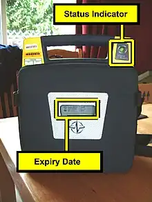The use of easily visible status indicator and pad expiration date on a Cardiac Science G3 AED