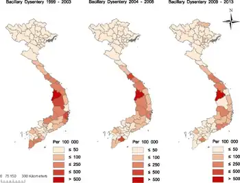 - ↑ Wang XY, Tao F, Xiao D, et al. (July 2006). "Trend and disease burden of bacillary dysentery in China (1991-2000)". Bull. World Health Organ. 84 (7): 561–8. doi:10.2471/BLT.05.023853. PMC 2627389. PMID 16878230. Archived from the original on 2016-05-31. Retrieved 2023-03-18.