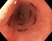 - ↑ Bibbò S, Ianiro G, Ricci R, Arciuolo D, Petruzziello L, Spada C, Larghi A, Riccioni ME, Gasbarrini A, Costamagna G, Cammarota G (Sep 2016). "Barrett's oesophagus and associated dysplasia are not equally distributed within the esophageal circumference". Dig Liver Dis. 48 (9): 1043–7. doi:10.1016/j.dld.2016.06.020. PMID 27436487.