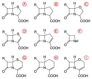 β-lactams are classified according to their core ring structures.[25]