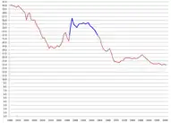 The practice of birth control was common throughout the U.S. prior to 1914, when the movement to legalize contraception began. Longstanding techniques included the rhythm method, withdrawal, diaphragms, contraceptive sponges, condoms, prolonged breastfeeding, and spermicides.[4] Use of contraceptives increased throughout the nineteenth century, contributing to a 50 percent drop in the fertility rate in the United States between 1800 and 1900, particularly in urban regions.[5] The only known survey conducted during the nineteenth century of American women's contraceptive habits was performed by Clelia Mosher from 1892 to 1912.[6] The survey was based on a small sample of upper-class women, and shows that most of the women used contraception (primarily douching, but also withdrawal, rhythm, condoms and pessaries) and that they viewed sex as a pleasurable act that could be undertaken without the goal of procreation.[7]