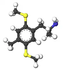 Bis-TOM (4-methyl-2,5-dimethylthio-alpha-methylphenethylamine) is a substituted amphetamine. It is an analog of DOM. Bis-TOM was first synthesized by Alexander Shulgin. In his book PiHKAL, the minimum dosage is listed as 160 mg, and the duration unknown. Bis-TOM produces no psychoactive effects.[1] Very little data exists about the pharmacological properties, metabolism, and toxicity of Bis-TOM.