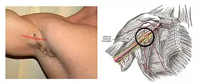 - 1 2 Satapathy, AR; Coventry, DM (2011). "Axillary Brachial Plexus Block". Anesthesiology Research and Practice. 2011: 1–5. doi:10.1155/2011/173796. PMC 3119420. PMID 21716725.