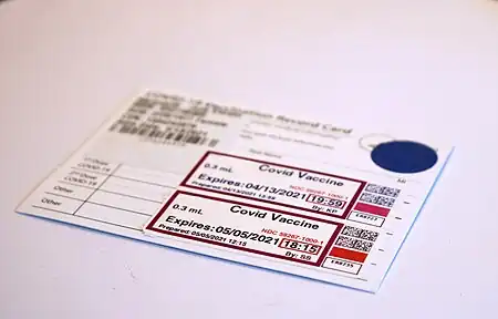 - ↑ Woodyatt, Amy; Kennedy, Niamh (7 December 2020). "This is what the UK's Covid-19 vaccination cards will look like". CNN. Archived from the original on 10 April 2023. Retrieved 6 September 2023.