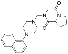 - ↑ López-Rodríguez ML, Morcillo MJ, Fernández E, et al. (April 2003). "Design and synthesis of S-(−)-2-[[4-(napht-1-yl)piperazin-1-yl]methyl]-1,4-dioxoperhydropyrrolo[1,2-a]pyrazine (CSP-2503) using computational simulation. A 5-HT1A receptor agonist". Bioorganic & Medicinal Chemistry Letters. 13 (8): 1429–32. doi:10.1016/S0960-894X(03)00160-4. PMID 12668005.
