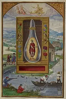 There are a few other examples of use in this period. It may have been used as a symbol by Sir William Butts, physician to Henry VIII.[5] Similarly, physician John Caius, founder of Caius College, Cambridge, and at the time President of the Royal College of Physicians, during official visits to his eponymous college, had carried before him a silver caduceus on a cushion, and later presented this artefact to the college, where it remains in the college's possession.[19] This use was adduced by the medical historian (and primary apologist for the use of the caduceus in a medical context) Fielding Garrison to support his argument that the caduceus was used as a symbol of medicine as far back as the 16th century. However, as Walter Friedlander noted, "what Caius used was a non-specific herald's wand, rather than the caduceus of Hermes." In support of this assertion he quotes Caius's own words on why he chose a herald's wand as a symbol, making it clear that he chose it as a symbol of prudence.[3] This same passage was also earlier referenced by Engle in refuting Garrison's claim. Engle and Friedlander are not the only ones to have noted that the use of the Caduceus by Caius had nothing to do with supposed medical symbolism; as indicated in a publication produced by the Royal College of Physicians itself: "[...] by introducing the caduceus into the ceremony of the College of Physicians, Caius unintentionally added to the confusion between the two emblems for later times, when few people understand the visual signs with which he was so familiar."[20]
