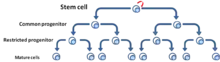 Cancer stem cells (CSCs) are cancer cells (found within tumors or hematological cancers) that possess characteristics associated with normal stem cells, specifically the ability to give rise to all cell types found in a particular cancer sample. CSCs are therefore tumorigenic (tumor-forming), perhaps in contrast to other non-tumorigenic cancer cells.[1] CSCs may generate tumors through the stem cell processes of self-renewal and differentiation into multiple cell types. Such cells are hypothesized to persist in tumors as a distinct population and cause relapse and metastasis by giving rise to new tumors. Therefore, development of specific therapies targeted at CSCs holds hope for improvement of survival and quality of life of cancer patients, especially for patients with metastatic disease.