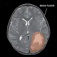 Several analysis can be used to determine the presence of the disease. Physical examinations showing papilledema, visual field defects, cranial nerves palsy, dysphasia, and focal neurological deficits are evidences for possible tumor.[2] PNETs can also be spotted through computed tomography (CT) and magnetic resonance imaging (MRI).[2] In images produced by MRIs, an irregular augmentation among a solid mass will indicated the presence of tumor.[3] However, the results of MRIs are usually ambiguous in defining the presence for this specific tumor.[2] In CT scans, the presence of PNETs will be indicated by an elevated density and an increase in volume of the brain.[2] The CT scan can also show calcification,[3] which is present in 41-44% of PNET cases.[2] Since the tumor can be replicated in other parts of the nervous system through the cerebrospinal fluid (CSF), a CSF analysis can also be conducted.[2] A spinal MRI is a fourth type of analysis that is useful in investigating the level of tumor propagation to the spinal cord.[2]