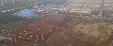 Within three weeks of the first known cases, the government built sixteen large mobile hospitals in Wuhan and sent 40,000 medical staff to the city.[31]: 137